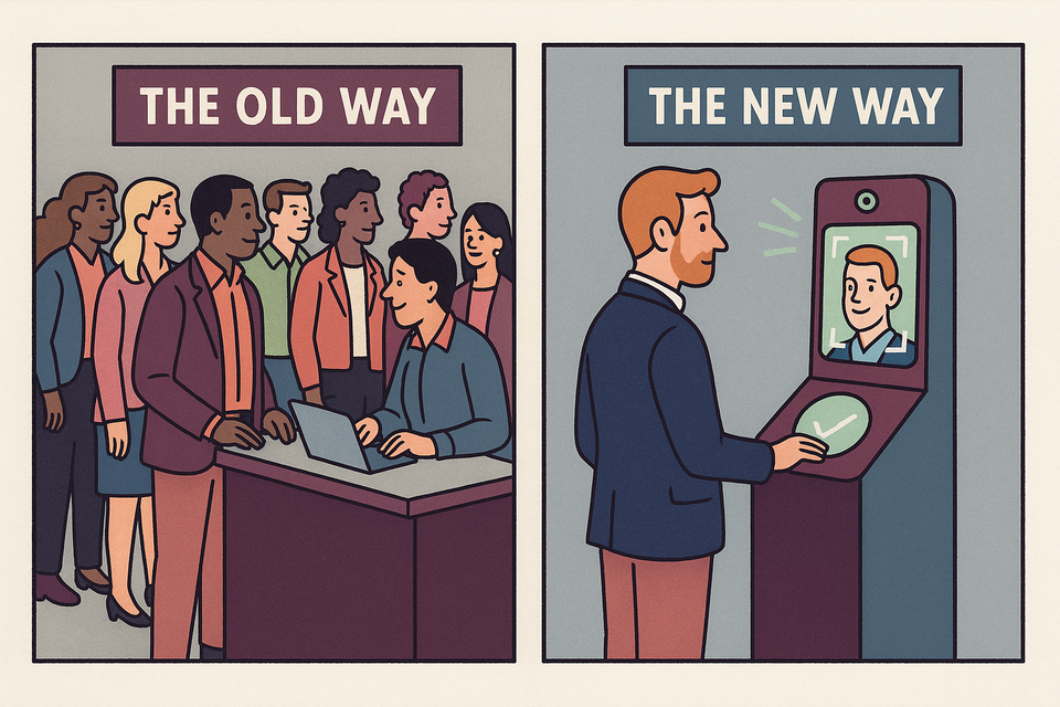 Facial recognition on its own isn’t anything new, but combining it with AI-generated speech or directions makes for a future-proofed, frictionless check-in.